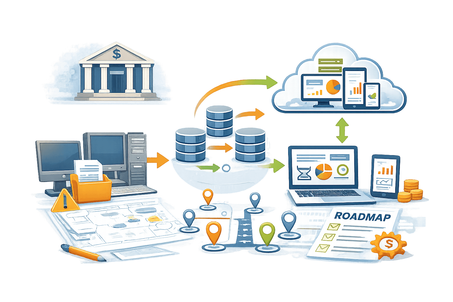 Kami membantu bank memodernisasi teknologi lama, memigrasikan data, serta membangun roadmap digital yang realistis tanpa mengganggu operasional.