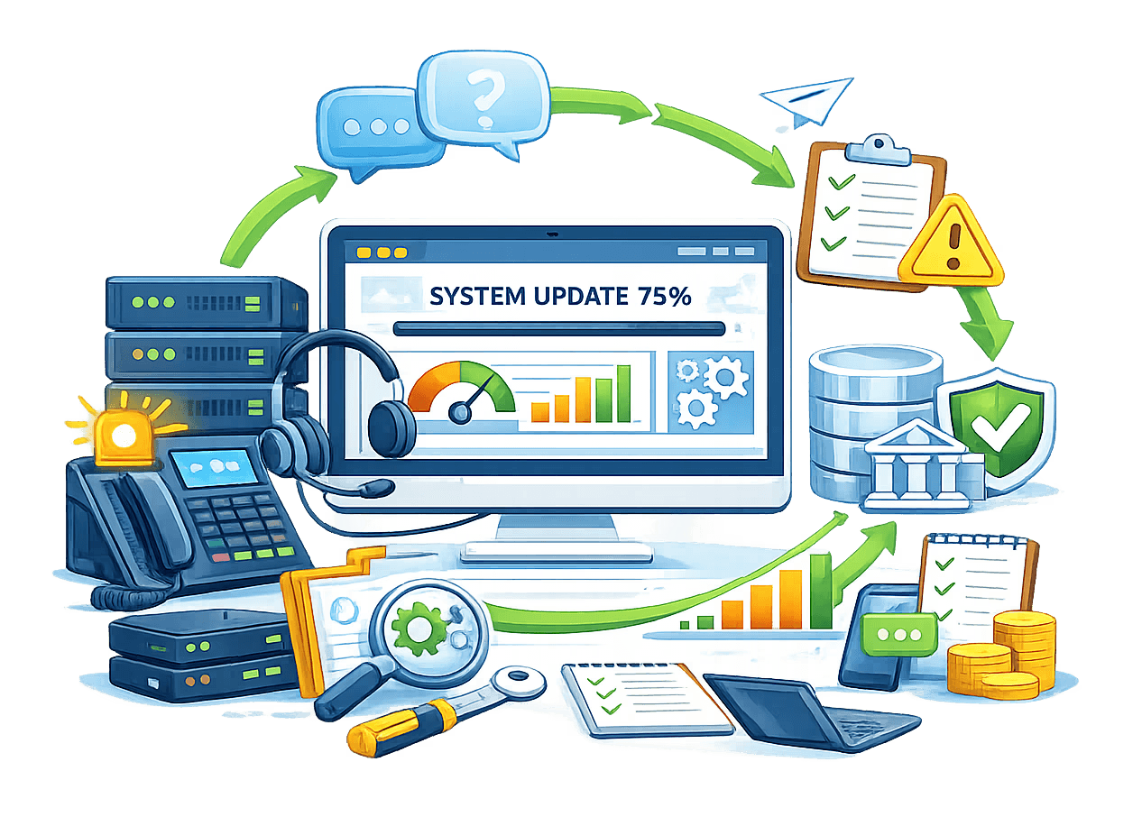 Layanan pemeliharaan sistem profesional dari Collega memastikan sistem perbankan Anda tetap optimal tanpa mengganggu operasional.