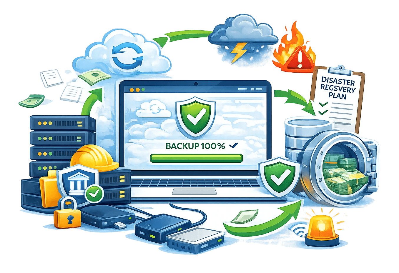 Menyediakan mekanisme backup otomatis dan rencana pemulihan bencana agar data bank tetap aman dari insiden kritis.